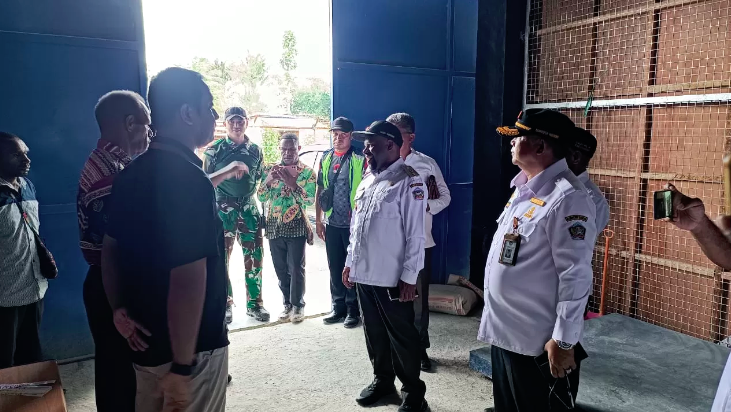 YAHUKIMO-Wakil Bupati Yahukimo Esau Miram didampingi Sekertaris Daerah Redison Manurung melakukan sidak di Gudang Cargo Bandara Nop Goliat Dekat, Kabupaten Yahukimo, Provinsi Papua Pengunungan, Rabu (20/3/2024).